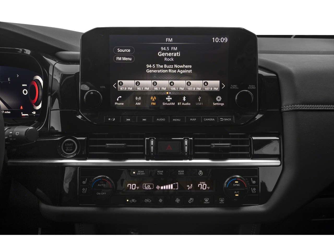 - Radio w/Seek-Scan, Clock, Speed Compensated Volume Control, Aux Audio Input Jack, Steering Wheel Controls and NissanConnect External Memory Control